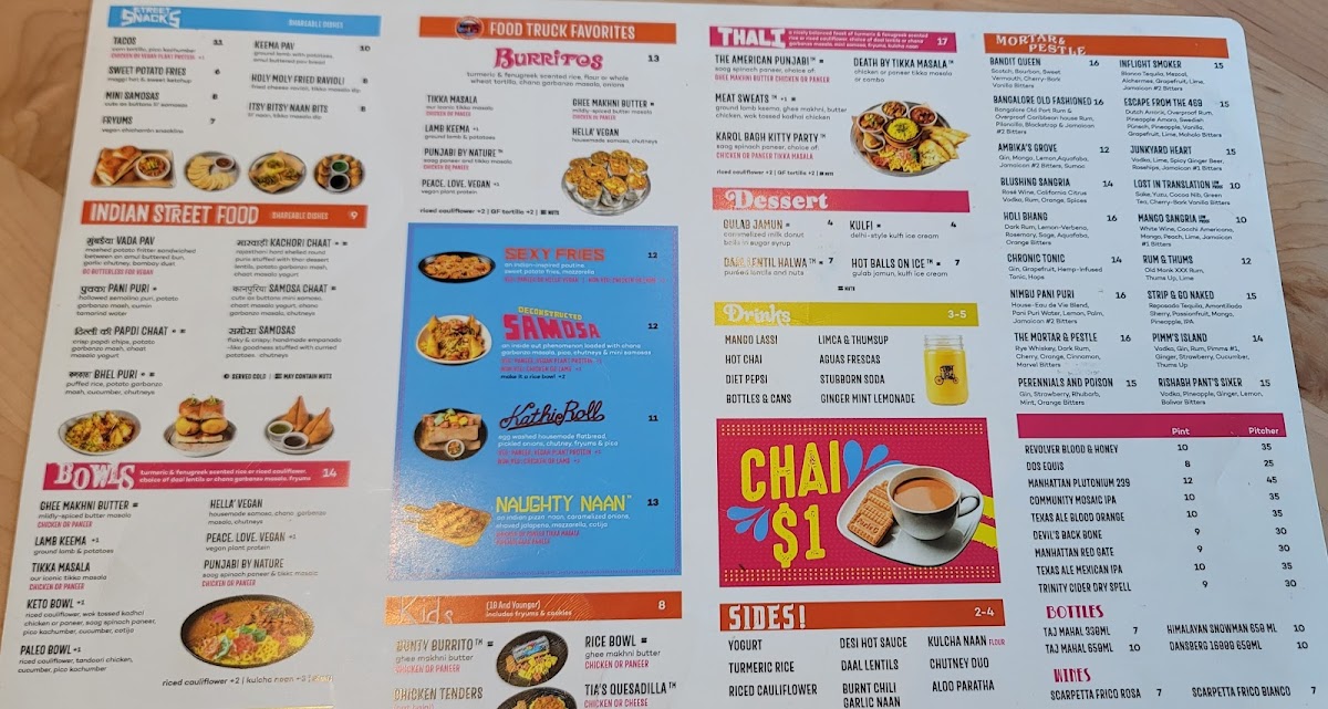 Yet, it’s not just the burritos that shine; the The Naughty Naan offers a fun twist on Indian pizza, combining naan with mozzarella and a variety of toppings like tandoori chicken or paneer. You can also explore the rich flavors of Mumbai with the Pav Bhaji Naughty Naan or the comforting Saag Paneer Naughty Naan.