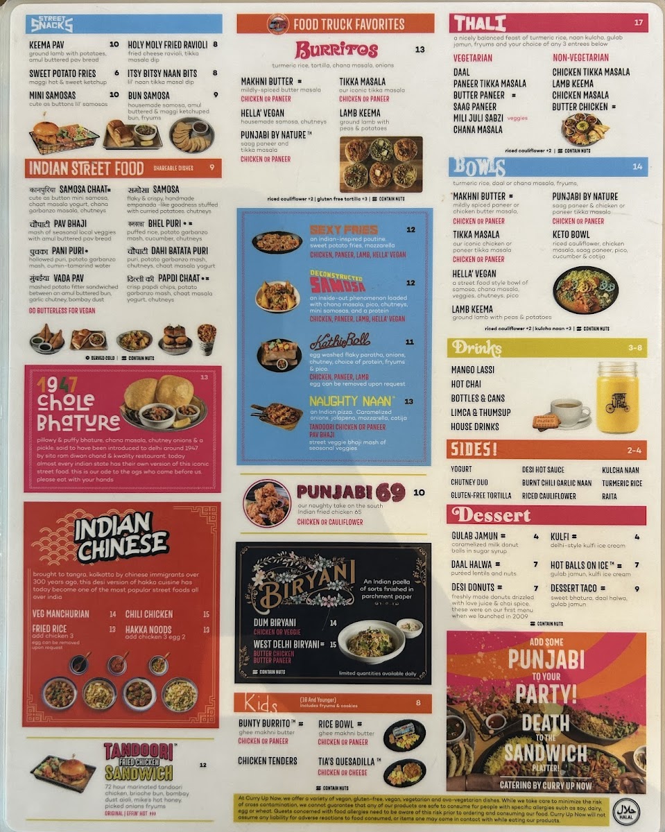 Welcome to Curry Up Now - The Colony, where traditional Indian flavors meet innovative culinary spins. Located at 5752 Grandscape Blvd, this vibrant eatery is dedicated to delivering an unforgettable dining experience. The menu is a treasure trove of delicious options, including the famous Punjabi 69—a delightful twist on the classic fried chicken, featuring cauliflower for a vegetarian delight. Carnivores can indulge in the Shrimp 69 or the Punjabi Chicken 69, both packed with flavor.
